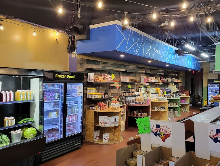 Grocery store offering local produce, juices, prepared foods, and a selection of organic and vegan products.